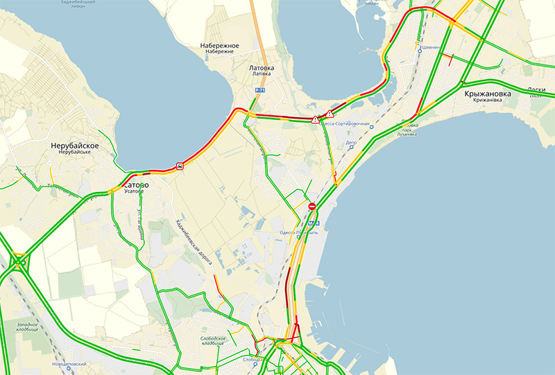 Повністю заблоковано рух по Об'їзній дорозі через аварію і ремонтні роботи там утворився масштабний затор. Миколаївська дорога і Пересипські мости досі закриті для руху - повідомляє прес-секретар Одеської міської ради Наталія Мальцева