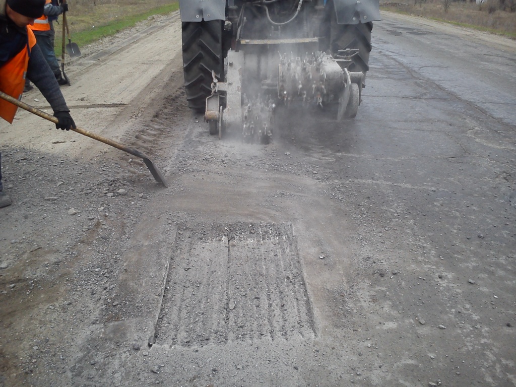 На фото - проводитися ямковий ремонт на аварійних ділянках автодороги державного значення Р-66 Демино-Олександрівка-Сватове-Лисичанськ-Луганськ.