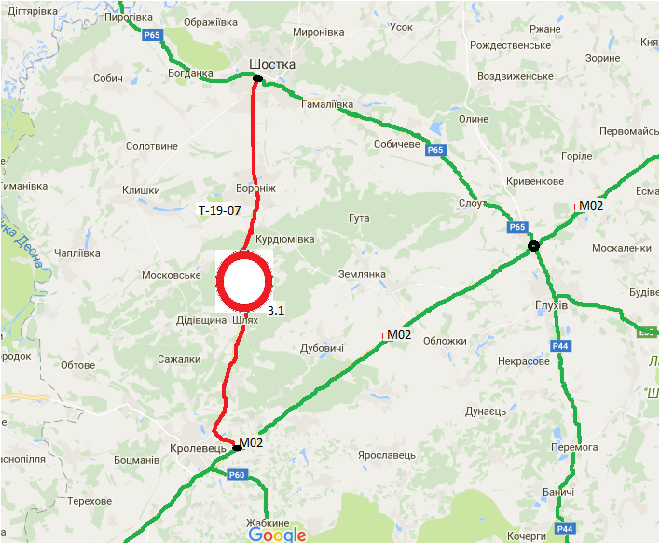 З 15 жовтня до 01 листопада 2017 року у зв’язку з виконанням ремонтних робіт мостових споруд на автомобільній дорозі державного значення Т-19-07 Шостка- Кролевець рух автомобільного транспорту від с. Воронцове до м. Кролевець (на ділянці з 18 км +010 до 33 км +481) буде закритий. Об’їзд буде здійснюватись по автомобільній дорозі М-02 Кіпті-Глухів-Бачівськ та Р-65 КПП «Миколаївка»-Семенівка-Н.Сіверський-Глухів-КПП «Катеринівка» відповідно до встановлених схем.